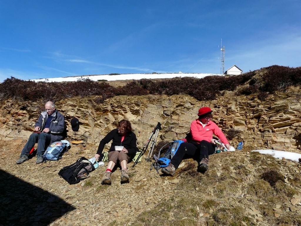 Partis du village d’Azet vers 10h30 sans les raquettes que nous avions lâchement abandonnées dans le coffre des voitures, nous avons emprunté le GR 10 pour passer devant les granges de Goudes avant d’atteindre le sommet de la crête vers 13h où nous avons pu pique-niquer en profitant du beau temps et des superbes paysages sur les vallées et les sommets à peine enneigés.
