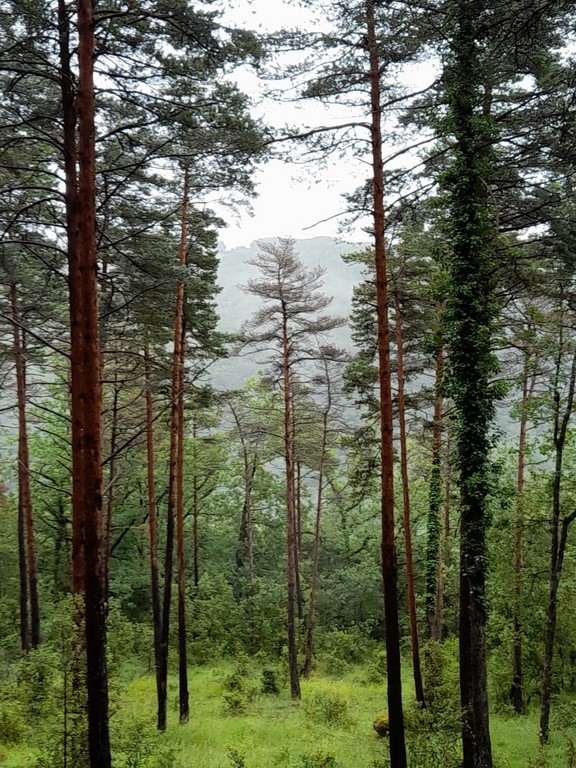 Nous n’avons pas l’ambition d’atteindre le point de Montoulieu culminant à 480 mètres et optons pour une marche tranquille. Le chemin caillouteux se faufile dans la végétation. Ici, hêtres ou chênes bordent le chemin. Là, pins sylvestres et pins laricios magnifiquement ramifiés s’élancent, effilés, dans une clairière où un peu de solitude les laissent prendre leurs aises…Un endroit empreint d’un supplément d’émotion. Dans cet écrin de verdure, il est difficile de ne pas se souvenir qu’il a été pendant l’occupation allemande de la deuxième guerre mondiale le refuge du maquis international appartenant au groupe Vendôme, le « Maquis de Grésigne » constitué de résistants essentiellement polonais et espagnols.