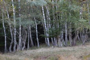 Le soleil a fini de percer la brume matinale  quand nous commençons notre ascension en empruntant le GR10. Christian et Bernard ont prévu un trajet en boucle, avec un  dénivelé  d’environ 500 m, dont  la pente progressive nous laisse le loisir d’apprécier la beauté des différents étages de végétation, le sentier initialement bordé de noisetiers et de frênes,  puis de hêtres et de sapins, laissant progressivement  place à un paysage de prairies à découvert . A mesure que nous grimpons, leur herbe verte (que broutent  encore quelques vaches – bretonnes ! – dans un pré clos), s’assèche et jaunit, progressivement remplacée par des myrtilliers et de la bruyère, asséchée elle aussi par la trop longue canicule estivale. La fleur mauve des nombreux  colchiques éclaire avec bonheur  la tonalité d’arrière saison de la végétation. Les poètes du groupe s’en donnent à coeur joie, les photographes photographient à tout rompre, tandis que de son œil de botaniste curieux et attentif, Pascal repère un dernier et minuscule bourdon pollinisant dans une fleur.