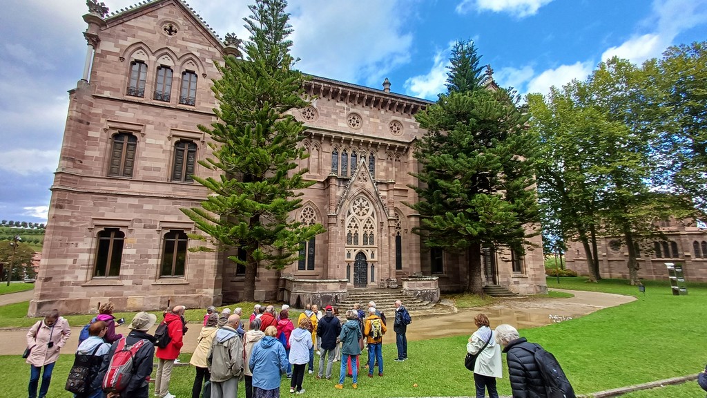 Dans ce village est né Juan de la Cosa, lequel a participé à l’expédition maritime de Christophe Colomb, mais son navire la Santa Maria a coulé avant d’arriver en Amérique. Toujours trempés, le bus nous ramène à Suances pour le repas, avant de repartir pour Comillas, résidence d’été des rois à la fin du XIXème siècle. Carmen notre guide nous fait admirer de loin un très grand palais néogothique perché en haut du village. C’était le plus grand et prestigieux séminaire du pays, ce qui explique le surnom donné à Comillas « la ville des archevêques ». Il est devenu depuis, une université pour les professeurs qui enseignent l’espagnol à l’étranger.