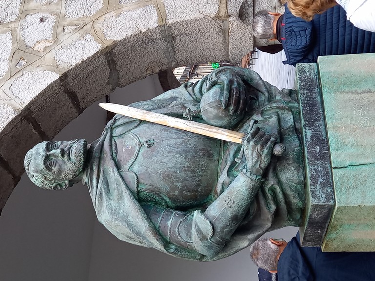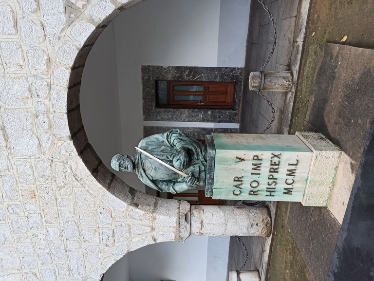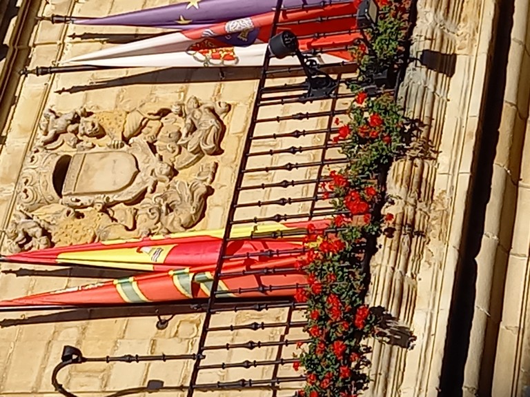 Ce matin, notre destination est la ville de Laredo, pour cela nous revenons sur nos pas, après Santander, nous atteignons Laredo qui a été longtemps, le port le plus important du littoral cantabrique, de nombreux souverains y ont embarqué ou débarqué. C’est le cas de carles Quint, roi d’Espagne et Empereur germanique, revenu à Laredo après son abdication en faveur de son fils Philippe II. Il restera quelques jours dans la ville pour se relettre de son long voyage avant de rejoindre avec sa suite de 150 personnes le monastère de Yuste près de Càcerès où, perclus de la goutte, il décèdera peu après. Nous verrons dans la vieille ville la maison qu’il a occupée à la suite de sa mère Jeanne La Folle et de sa grand-mère Isabelle La Catholique. Mais l’intérêt majeur de cette ville est lié à ses belles plages de sable fin, celle de Salve est longue de 4 km. Notre guide nous fait découvrir une petite plage rocheuse à laquelle on accède après avoir traversé un long tunnel, mais il pleut des trombes d’eau et nous regagnons en vitesse le bus tout en regardant les balcons décorés de drapeaux et de tapisseries, un reliquat des fêtes qui se sont déroulées, il y a peu de jours, en souvenir de Charles Quint.