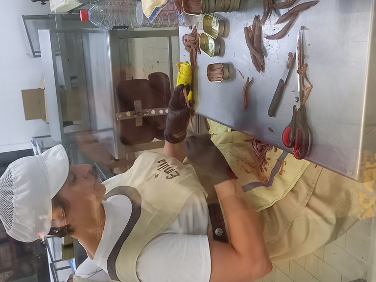 Un court trajet en bus nous amène à Santona , la capitale des anchois, au milieu d’un parc naturel marécageux, refuge de nombreuses espèces d’oiseaux. Une fois le soleil revenu nous visitons une conserverie. Derrière des vitres des femmes équeutent les anchois à toute vitesse, sans lever la tête, car elles sont payées à la quantité de poissons décortiqués, un travail bien fastidieux.