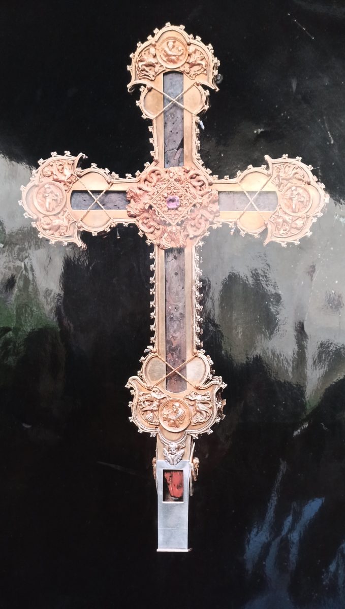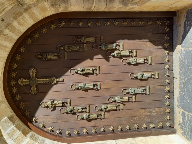 Ce bois âgé de plus de 2000 ans, provient d’une variété de cyprès de Palestine, il serait arrivé au VIIème siècle au monastère, en même temps que le Saint, ce qui fait de ce lieu un centre de pèlerinage. L’édifice est pourvu d’une porte du patron qui ne s’ouvre que pour les jubilés (ce fut le cas l’an passé). Il suffit alors de la passer pour voir tous ses péchés effacés !