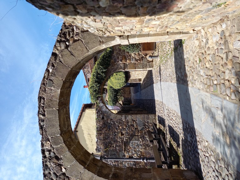 De vieilles maisons en pierres restaurées voisinent avec des boutiques pour touristes. Dans une des deux églises, on trouve un curieux tableau de la crucifixion du Christ : celui-ci est couvert d’une jupette blanche.