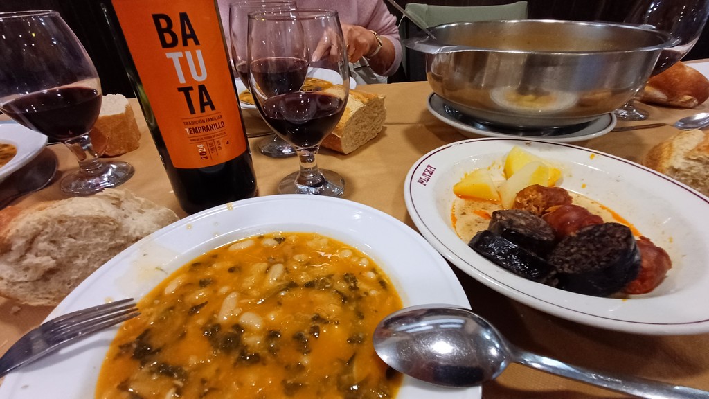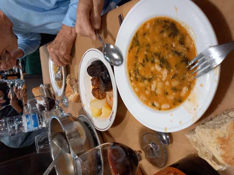Après la visite, nous retournons à Potes où un repas typique nous attend. Il s’agit d’une soupe aux haricots blancs garnie de boudin au riz et de chorizo.