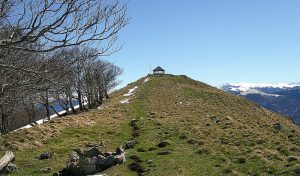 Nous  pique-niquons au sommet dans un cadre grandiose à côté de deux jeunes brebis dont on ne sait si elles ont faim de sel, ou de compagnie. Une table d’orientation  protégée par un abri ouvert nous aide à reconnaître les nombreux hauts  sommets de la chaîne des Pyrénées,  de l’Aneto au Pic du Midi de Bigorre.  Un panneau pédagogique nous apprend que l’abri a été bâti sur un sanctuaire antique composé de vestiges d’autels votifs d’époque gallo-romaine, possiblement dédiés à Jupiter, qui sont actuellement conservés au Musée St Raymond de Toulouse.