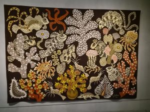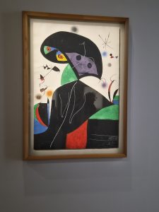 Nous nous arrêtons devant une lithographie en couleur de Salvador Dali peinte en 1974 ,« MoÏse et le Monothéisme » et entrons dans l’univers coloré de Joan Miro.