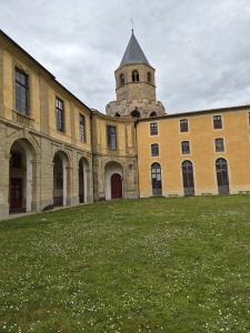 Notre guide nous conduit dans l’immense « cour des Grands » dont les piliers sont tapissés de graffitis sculptés par de nombreux talents connus venus se forger à l’enseignement rigoureux dispensé dans l’établissement. Isabelle retrace l’origine du bâtiment reconstruit au X° après la destruction de l’abbaye carolingienne fondée en 754 par Pépin d’Aquitaine. Sorèze connaîtra les tourments des guerres de Religion. Le monastère sera détruit en 1573 par les protestants.