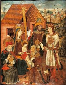 Au Moyen Age, la péninsule ibérique est partagée entre royaumes chrétiens et musulmans. Dès le début de 722, la « Reconquista Chrétienne » s’accompagne de la production de nouvelles œuvres religieuses pour les églises et les couvents. Les échanges artistiques entre l’Espagne, la France, l’Italie et les Pays Bas favorisent l’émergence du style gothique caractérisé par l’arabesque, l’élégance des formes, les fonds d’or, la vivacité des couleurs et l’attention portée aux détails. Le regard s’émerveille en découvrant ors et couleurs des tableaux de bois peints.